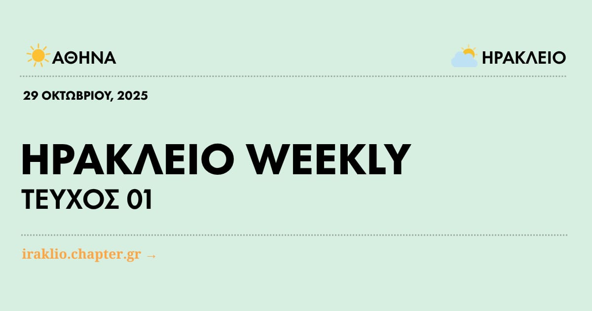 Μια συμφωνία-ορόσημο υπόσχεται ένα καλύτερο μέλλον για τα Ενετικά Τείχη και τα Νεώρια, το λιμάνι υψώνει μια γιγαντιαία γαλανόλευκη και ένας Ηρακλειώτης εφευρέτης θριαμβεύει στην καρδιά της τεχνολογίας. Το τέλος του Οκτώβρη θυμίζει καλοκαίρι και γεμίζει τις ακτές, ενώ η πλατεία Μιχαήλ Κατσαμάνη αποκτά επιτέλους μια νέα, προσβάσιμη παιδική χαρά υψηλής αισθητικής.