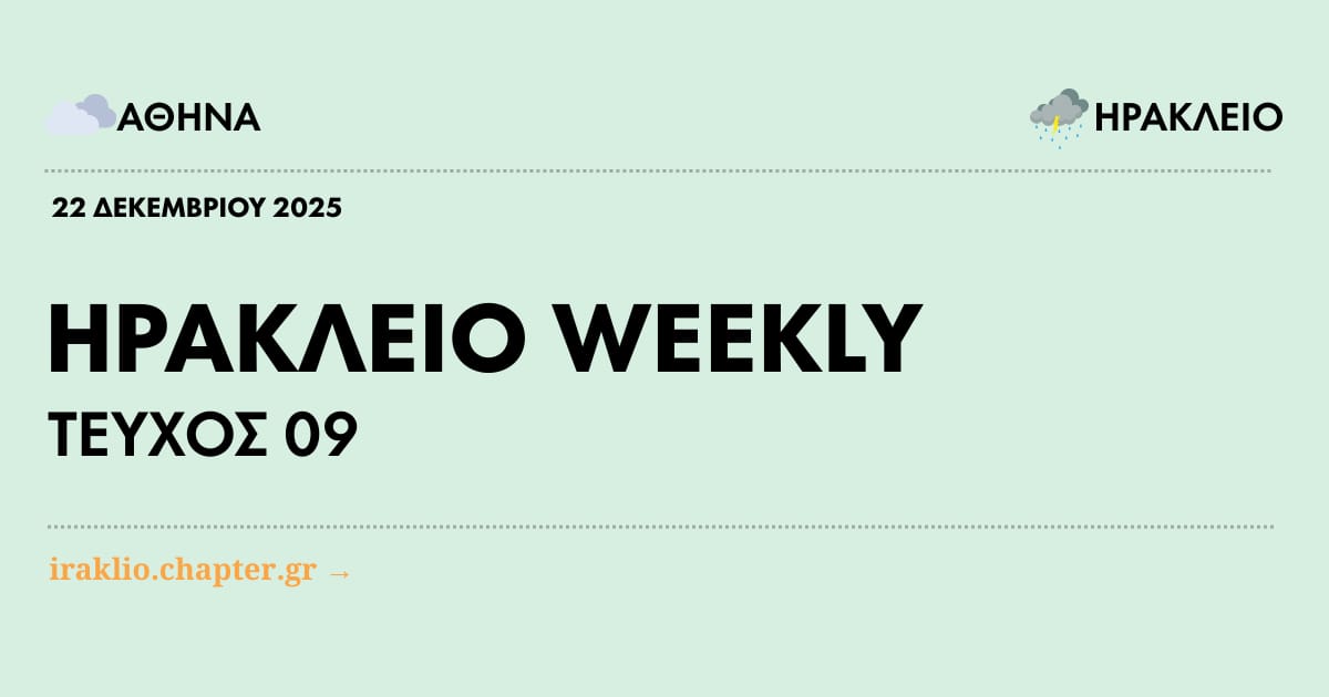 Γιορτινές δράσεις γεμίζουν το Ηράκλειο με πολιτισμό και χαρά: εκπαιδευτικά προγράμματα από το Μουσείο Καζαντζάκη, αυτοσχεδιαστικό θέατρο, χριστουγεννιάτικες εμπειρίες για παιδιά και το ψηλότερο χριστουγεννιάτικο δέντρο της Ευρώπης στη Σαμαριά. Μαζί με διεθνείς διακρίσεις στην επιστήμη, τη λογοτεχνία και την τεχνητή νοημοσύνη, τα καλά νέα από την Κρήτη συνεχίζονται - και μας φτιάχνουν τη διάθεση.